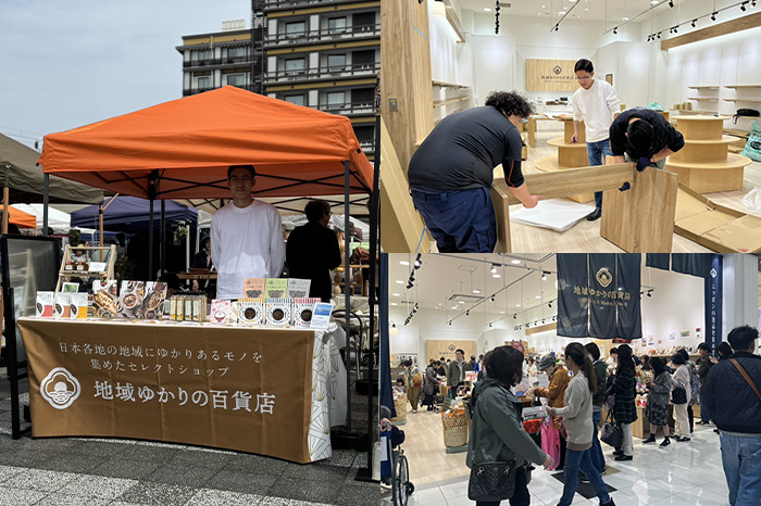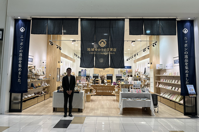 すると顕著に売上にもつながり、お客様は大変喜んでいました。そこからは実績が紹介を呼び、どんどん地方メーカー様からのご相談が増えていきました。当時は本当に少ないリソースで事業活動をしていたので、1社1社と向き合って、お客様の課題を解決していくことが困難になっていました。そこで考えたのが私たちがリスクを取って、地方メーカー様が作られたモノを仕入れ、消費者の方に直接販売するいわゆる小売り業を行えば、地方メーカー様の課題を広く解決することができると思い、地方の特産品を集めたセレクトショップをまずはインターネット通販から始めました。半年ほど運営しましたがあまりうまくいかず、催事などリアルの活動を増やしていきました。そうするとリアルの方が上手くいくのではという手ごたえを感じ、常設型の店舗をどこかに出店しようと思い、たまたまご縁があった私の地元のイオンモールへ出店することが決まりました。